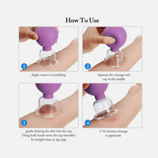 - Best Facial Cupping Kit: It includes four different sizes of cups, the smallest can be used for small areas such as the eyes, the medium can be used for the neck, cheek, and so on. Large ones can be used for body parts such as arms. When using, hold the part of silica gel to exhaust air, and then suck it on the skin. Use your skincare products for 10-15 minutes a day. I believe you will see the effect after a month.